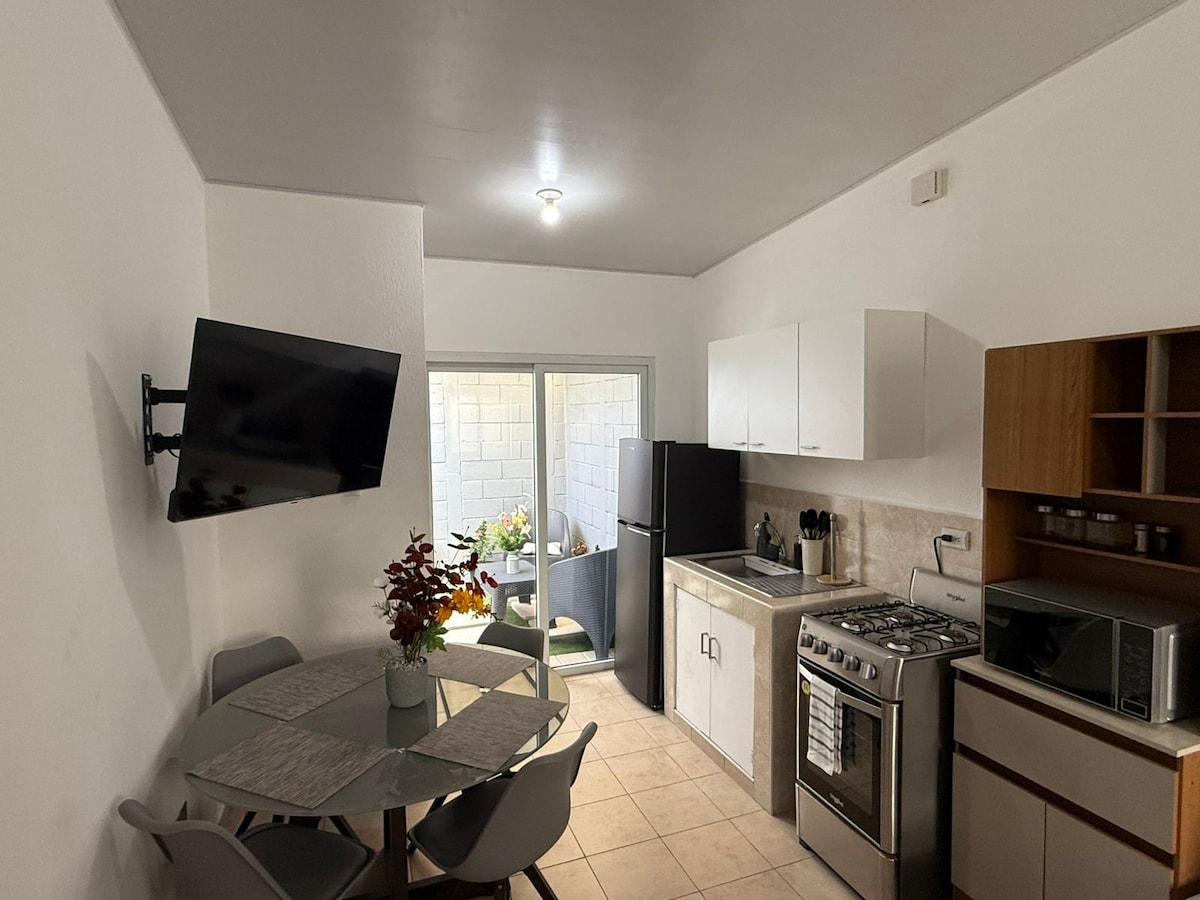 Apartamento María es moderno y acogedor, perfecto para quienes buscan comodidad, buena ubicación y un espacio para relajarse. Cuenta con aire acondicionado, una sala de cine ideal para disfrutar películas y series después de un día de actividades. Está ubicado cerca de centros comerciales, restaurantes y del corazón de Santa Ana, lo que facilita moverse por la ciudad sin complicaciones. Ideal para parejas, viajeros de descanso o trabajo que desean un lugar tranquilo, limpio y bien equipado.