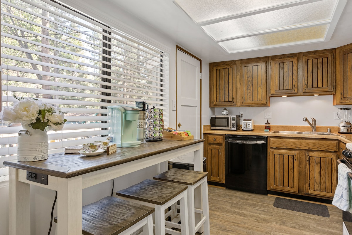 License # VRR-2025-0871 Wi-Fi CODE> rocketbasket147 < A storybook romantic Cottage! Queen Bedroom, A cozy (Full sized) Hide-a-Bed, Central Heating, AC, TV, DVD, micro, coffee maker, blender. Gas fireplace. Gas BBQ & griddle on the porch is great for cooking eggs and crispy pancakes in the mountain mornings. Pet friendly /fenced yard! Sooo close (e~z walkable) to the Lake and Dog Friendly Village. The embracing and welcoming "Ahhhdorable" Vintage Cottage will be perfect for a visit to Big Bear!