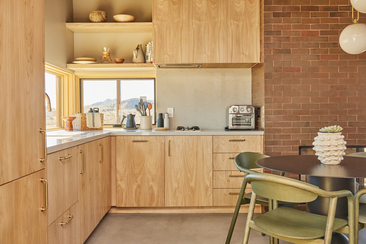 A private high-desert sanctuary designed for deep rest, reconnection, and slow mornings beneath wide open Joshua Tree skies. Soak in the cedar hot tub under the stars, plunge cold at sunrise, and unwind by the fire as the desert goes quiet around you. Thoughtfully designed with bespoke decor, linen sheets, handcrafted ceramics, curated sound, and fast Wi-Fi. Quiet, peaceful, and intentionally crafted for a rare, restorative desert escape. Reconnect with nature, with yourself, or someone you love
