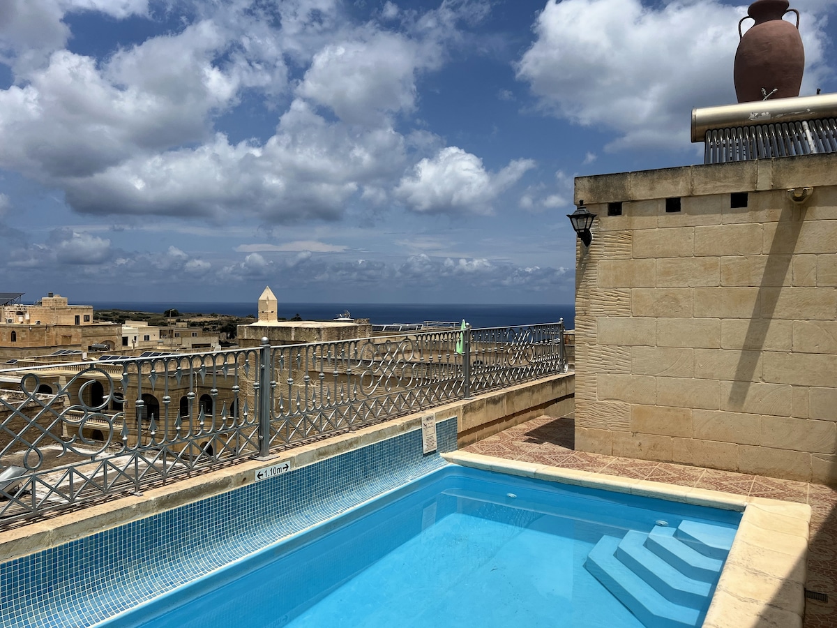 Escape to the tranquil surroundings of Gozo at our premium 3-storey holiday home with stunning views of the Mediterranean sea and sunsets over an authentic Gozitan village. Guests enjoy the private use of the incredible rooftop terrace with a glass edge pool and outdoor BBQ/dining area. The designer interior comes equipped with a full kitchen, 4K Smart TV, A/C in every bedroom and WiFi. The peaceful location is just a 5-minute walk from San Blas Bay and a 7-minute drive from sandy Ramla bay.