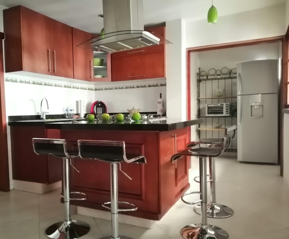 We invoice. It is a space created with a lot of love and dedication, ideal to rest and enjoy a little bit of nature inside, totally new, clean and organized. It also has an elegant and fully equipped kitchen. It has an excellent location, being 5 minutes from downtown and 15 minutes from the different industrial parks and the Bajío International Airport. You'll find small fruit and grocery stores around it.