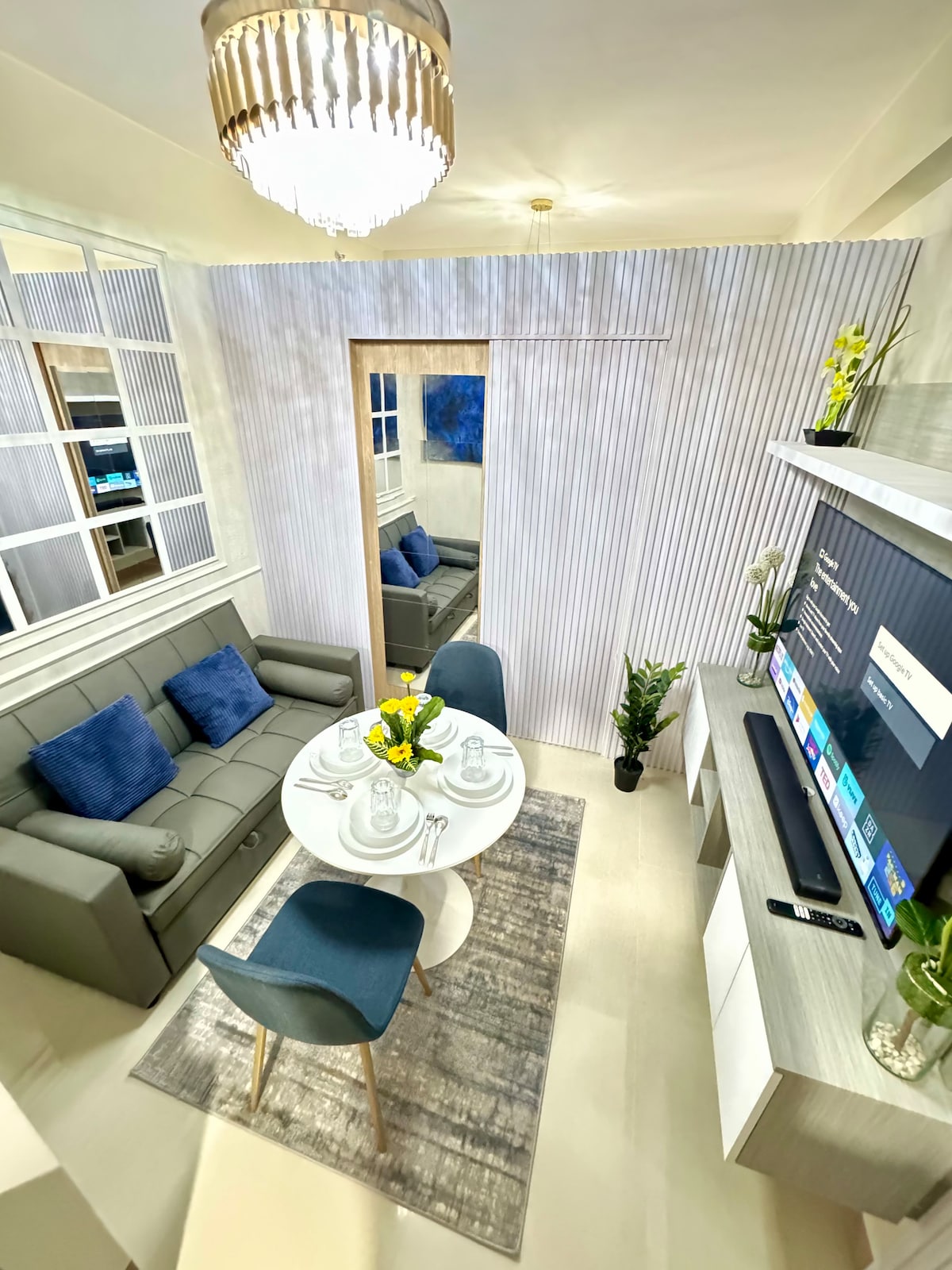 A luxurious smart condo with cozy balcony, swimming pools, free WiFi, Netflix, Xbox, air purifier and keyless entry. Walking distance from mall and minutes away from airport. *Keyless Access *Xbox *50Mbps WiFi *Netflix & YouTube *43 inch Smart HDR Internet LED Sony TV & Sony Soundbar *Bose speaker *Air Purifier *2 hp inverter A/C *Ceiling Fan *Double bed w/memory foam mattress & luxury linnen *Hot & Cold Drinking Water Dispenser *Hot Shower *Washing Machine *Complete Kitchen! *28.19 sqm