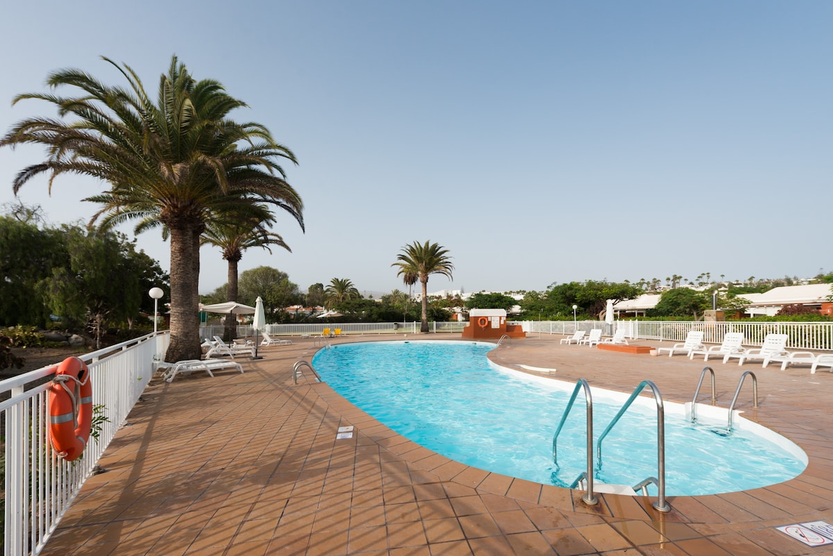 Relax and unwind in this quiet and elegant accommodation. Surrounded by nature and green areas with a huge swimming pool and a large area of sun loungers to relax. Very close to the golf course and tennis club. Also very close to the supermarket. In one of the best areas in Maspalomas. Perfectly located to go to Maspalomas beach, the lighthouse, the best restaurants in Meloneras and even the Yumbo shopping center, with the best gay atmosphere in Europe.