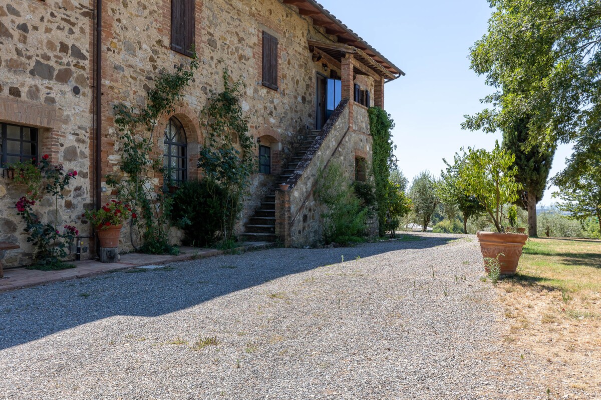 A wonderful place to spend a few days in pleasant company. A large living room with fireplace where you can relax after returning from beautiful walks, bike rides, and excursions. The independent apartment is 15 km from Siena, 20 km from the Thermal Baths and 40 minutes from the villages of San Gimignano and Monteriggioni. Overall, there is a farm that produces wines and oil with the possibility of guided tours and tasting of our products with themed dinners.