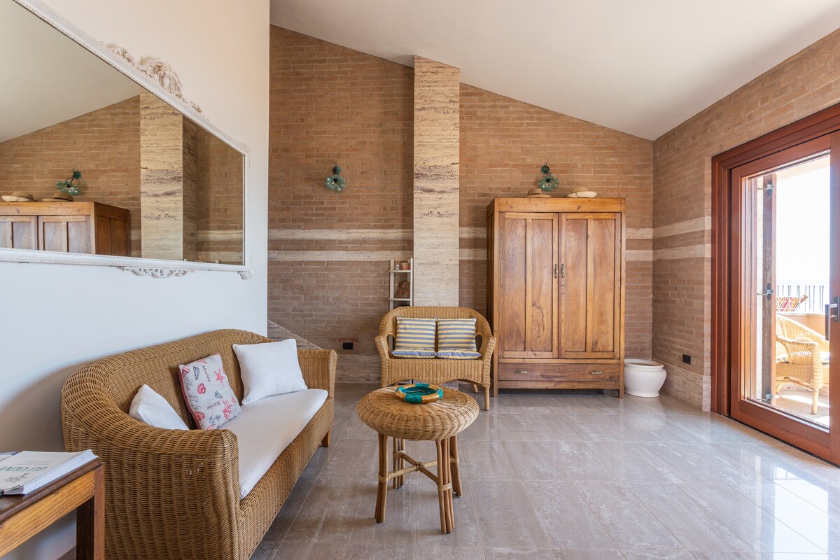 A stylish haven for every season, the top floor apartment at Casa Vela Meiga features a breathtaking panoramic sea view, top comforts, free private parking, wi-fi, washing machine, dishwasher, air con and more. Only a few minutes walk from the beach(around 200 metres away), Casa Vela Meiga is a semi-detached villa conveniently located in the quiet seaside village of Funtana Meiga, in the heart of the stunning Sinis Peninsula, central west coast of Sardinia. All welcome! (CIN IT095018C2000P3287)
