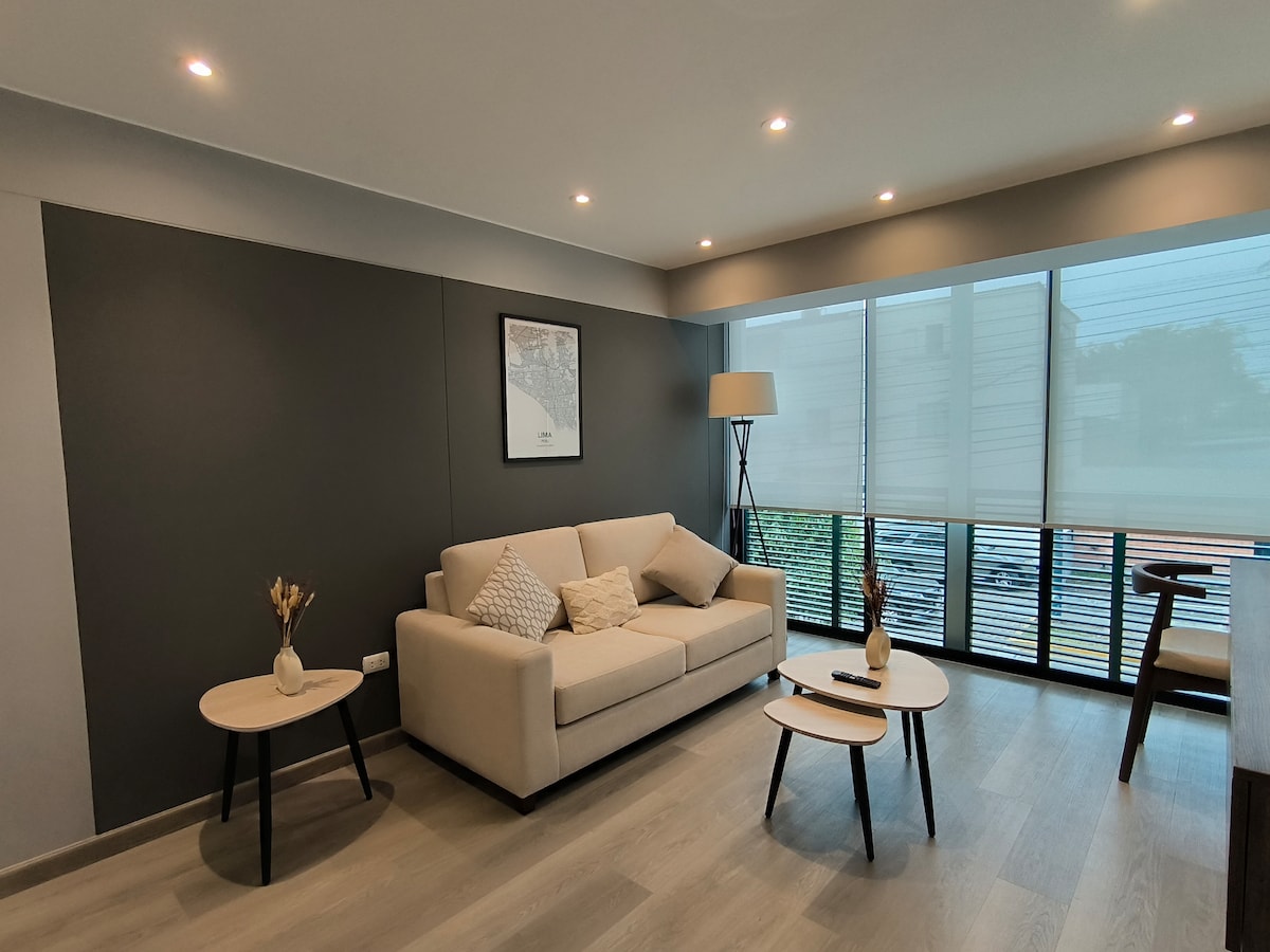 Live Lima from the 20th floor with stunning views! 🛏️ KING bed 📺 65" TV 🛋️ Comfy sofa 🍳 Fully equipped kitchen 🏊 Pool, 🔥 BBQ, and 🍸 Lounge Bar (subject to availability) 🚗 Parking for USD 8/night (subject to availability) 🧳 Store luggage before check-in or after check-out 📍 Prime location between Miraflores, San Isidro, and Surquillo 🌟 With a 4.96 rating and Superhost status, I offer you a comfortable and safe stay. 📅 Book now and enjoy Lima from the top, with style and comfort!