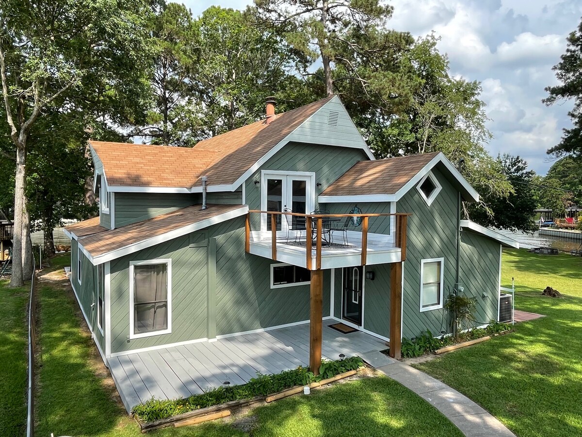 Enjoy the peace and zen in our fully renovated 2 bed / 1 bath lakefront home. With direct lake access, private boat house, and huge yard. You'll have the property to yourself to relax and enjoy the lake! The 950 sq ft house features 2 king beds, 2 sofa beds, fully stocked kitchen, washer / dryer, and an elegant & peaceful design. It's the perfect place for having breakfast on the patio, seeing the sunset over the lake, fishing, and taking in a drink & s'mores at the firepit at night!