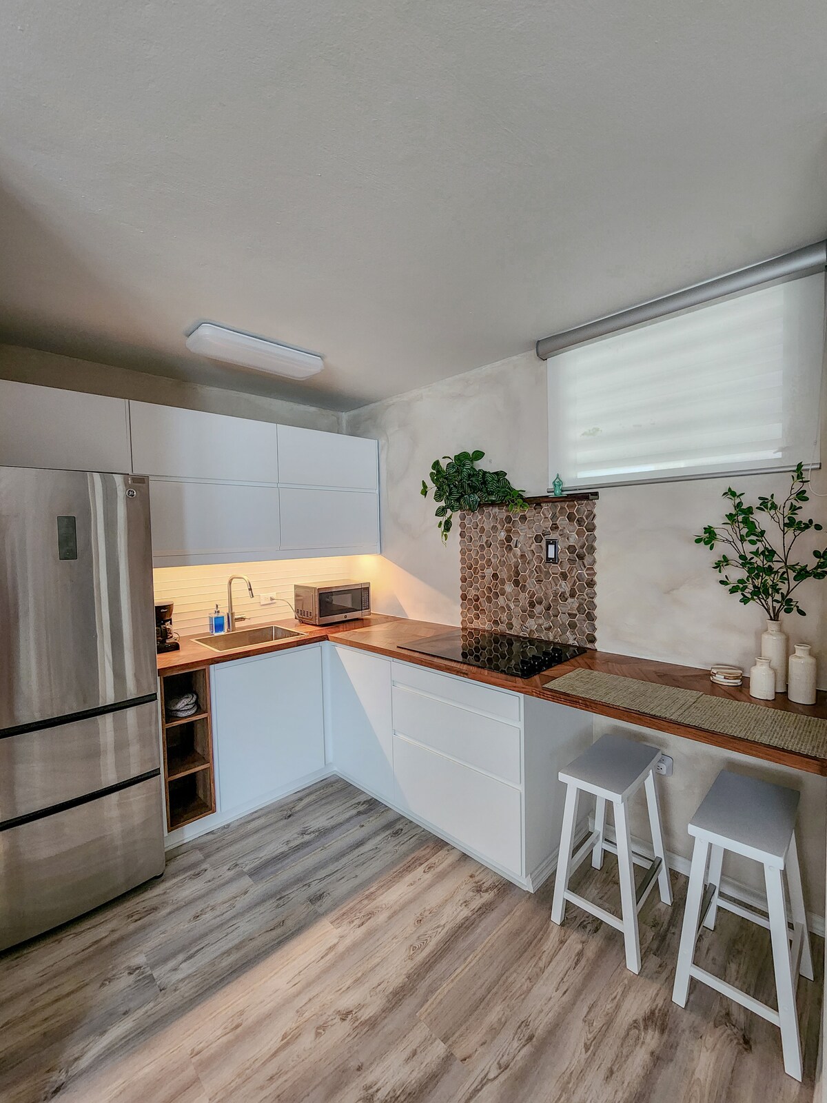 Modern and recently remodeled 580m2 aprox Studio apartment for Romantic get away with the ideal location in the heart of Condado that will please your mind with its breathtaking ocean and lagoon views. ELECTRIC BACKUP AVAILABLE, TESLA BATTERY. 10 min. from Luis Munoz Marin Airport, 5 minutes from Isla Grande Airport, T-Movil District. Minutes from our iconic streets of Old San Juan, Morro San Felipe and highly prestigious restaurants in the capital. Greats activities walking distance.