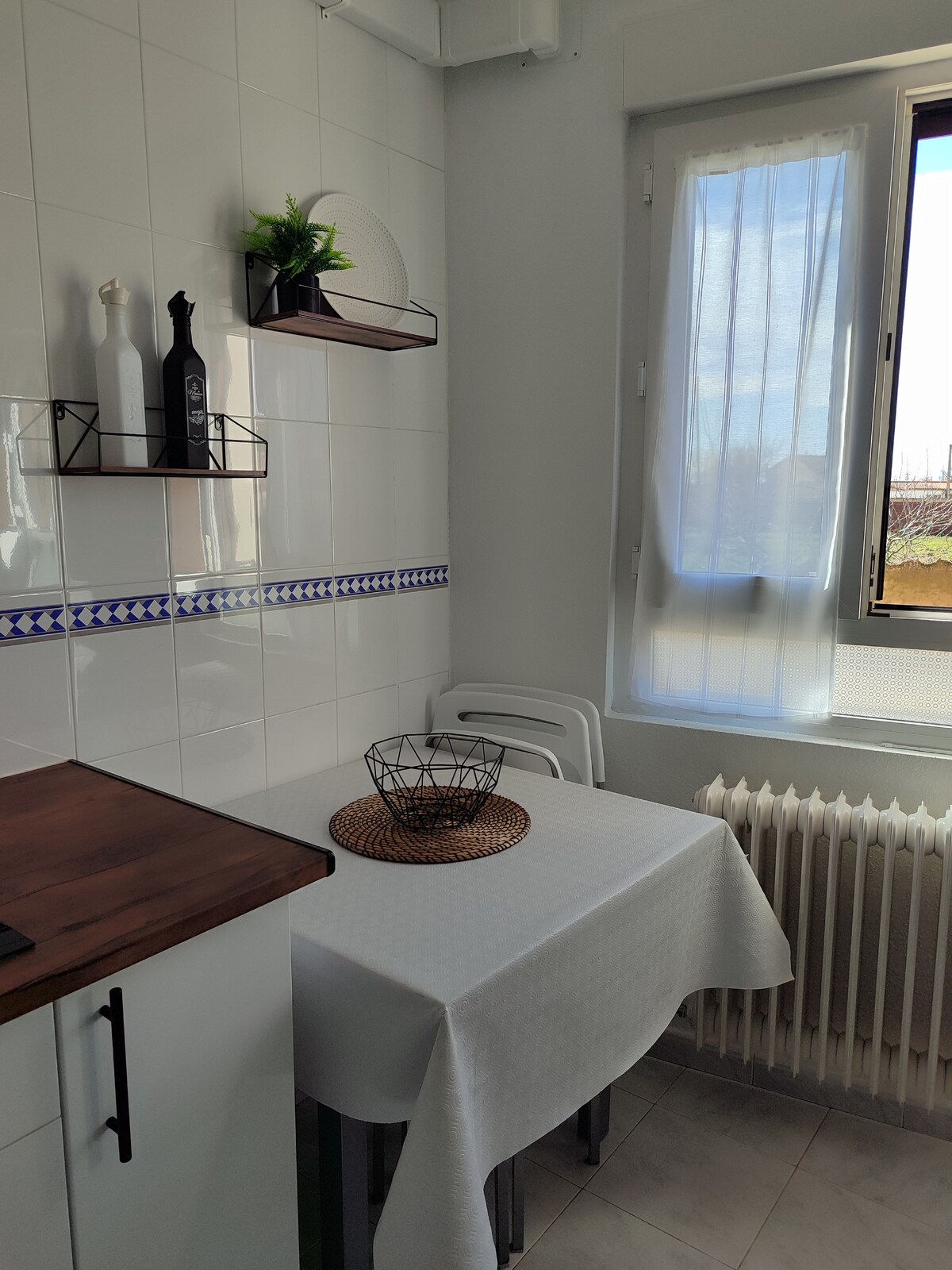 The apartment has a bedroom with a double bed (convertible into 2 single beds), a large open dressing room and a small balcony. It has a modern fully-equipped kitchen open to the living room that has a sofa (convertible into a bed) and a TV. The bathroom is spacious and fully equipped. It is located about a 10-minute walk from the cathedral and Barrio Húmedo. In the surroundings there are all kinds of services and the possibility of free street parking.