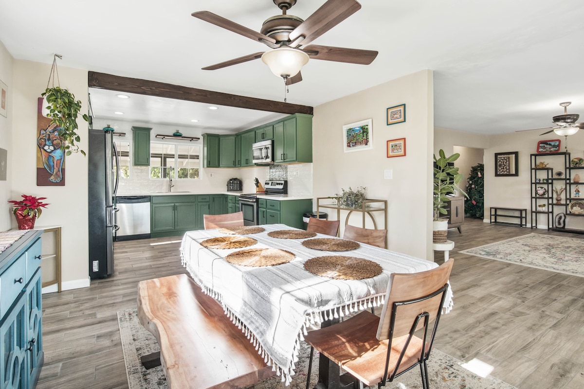 Minutes to Legoland, the San Diego Zoo & beaches! Spacious 4BR/3BA hillside retreat at the end of a cul-de-sac with panoramic views. Sleeps 9 with bunked room & game room for the kids. Huge fully gated yard (dogs stay free!), sunset deck with firepit & BBQ, and fully stocked kitchen. The perfect home base for theme park days, beach mornings & family adventures. Perfect for family vacations, weddings & multi-gen trips. Spacious indoor & outdoor living with room to relax after big family days.