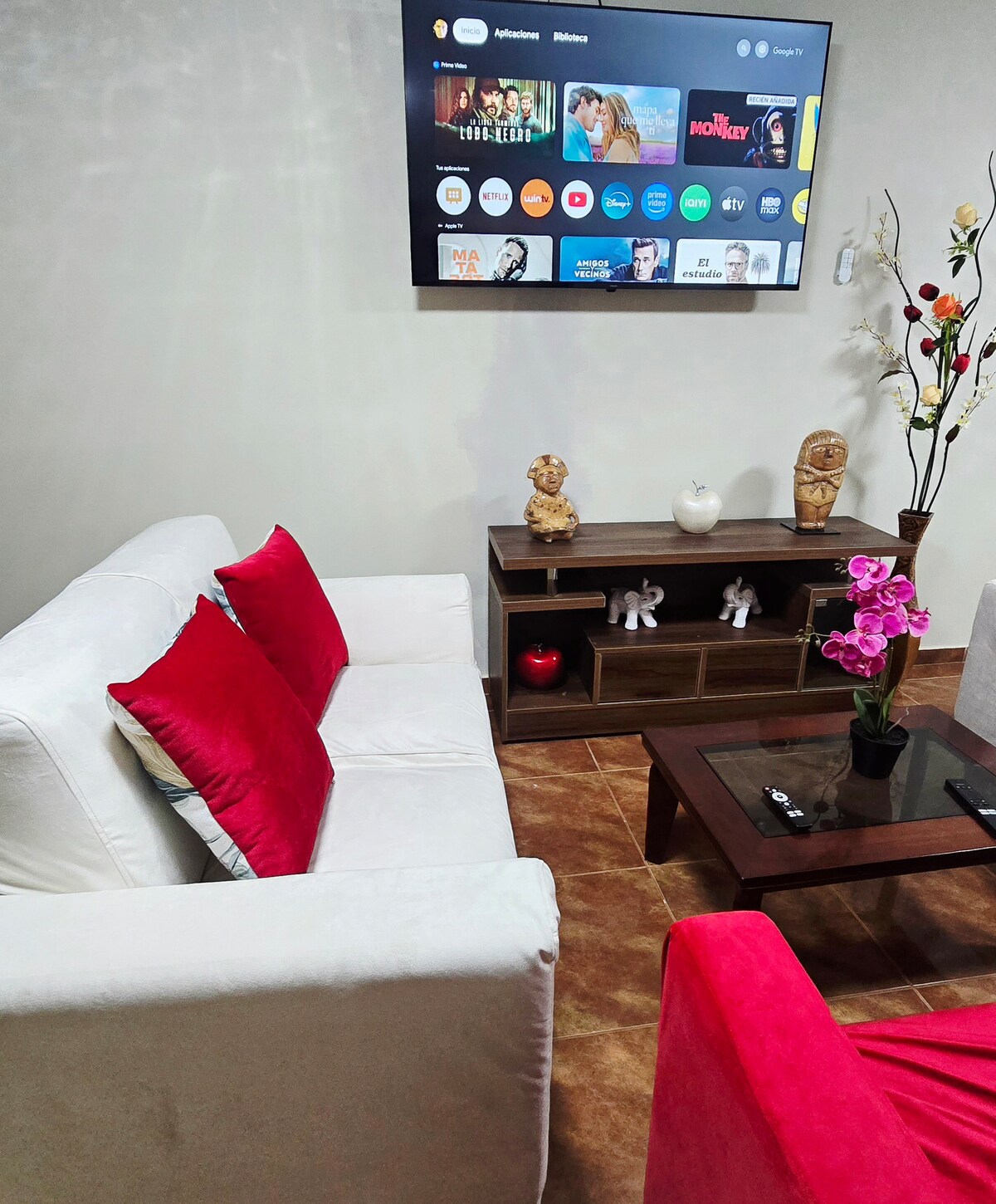 Welcome to a cozy atmosphere. Enjoy a quiet and comfortable place for you and your family. A fully equipped apartment with high-speed optical Internet. Enjoy your favorite movies on a 55" Smart TV, Netflix, Amazon Prime. 20 minutes from the airport, 25 minutes from downtown Lima. Close to main avenues (50 meters), 10 minutes from shopping centers such as Megaplaza, Plazanorte, bus terminal from where they leave to different parts of the country.