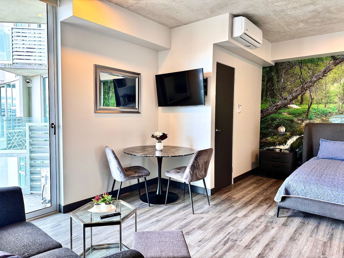 FREE early check-in upon request!! Escape stress in our stunning 23rd-floor adult-only apartment, offering an erotic touch . Enjoy 24/7 self-check-in, secure parking, and a rooftop with a heated pool for sunset relaxation. Fully equipped kitchen and numerous restaurants, coffee shops and markets nearby. Perfect for couples local looking for a quick get away or the best option for foreigners to start or end their Costa Rica trip .