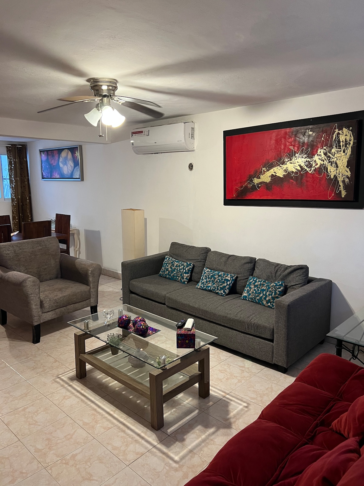 Nice apartment - 2 bedrooms, 2 bathrooms with a nice balcony. Located right in the heart of Cozumel Downtown: Steps from beach, restaurants, bars, Supermarket, ATM, Ferry, Museum. The apartment is at the 1st floor without lift, well equipped with WIFI, A/C, furnished kitchen, snorkel gears available. Big terrace with 2 beach chairs and breakfast table. . Neighbourhood is very quite and street very safe.