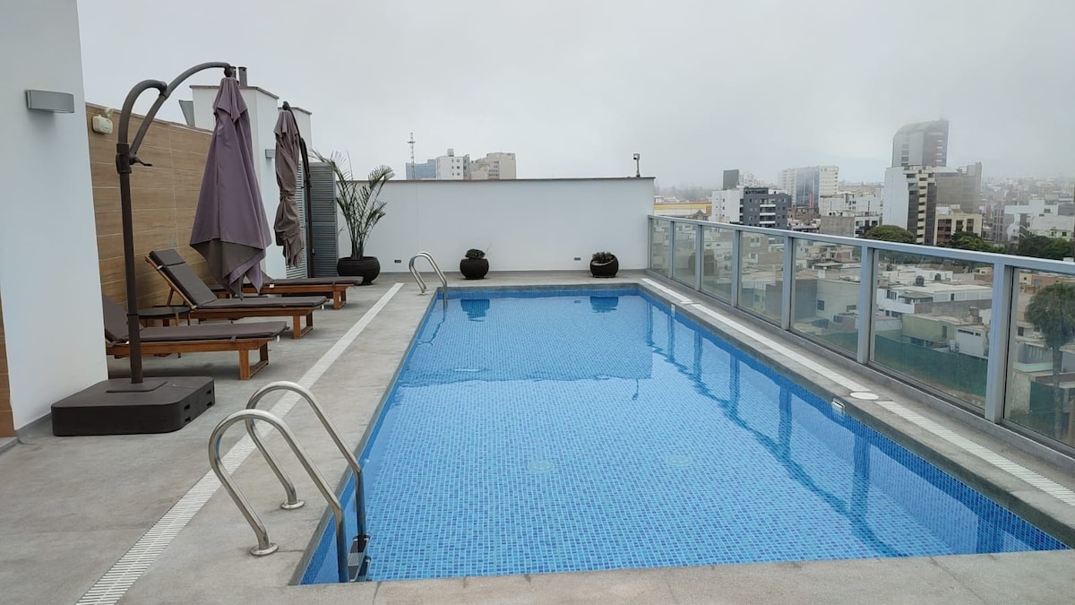 The apartment is located near the airport and 15 minutes from Miraflores by the beach circuit. You can enjoy an ocean view from all the rooms. We have transportation service and 24/7 guest support. The apartment is fully equipped, high-speed hot water, Wi-Fi, 2 55" TVs, and has a panoramic pool on the top floor, as well as a sauna and gym.