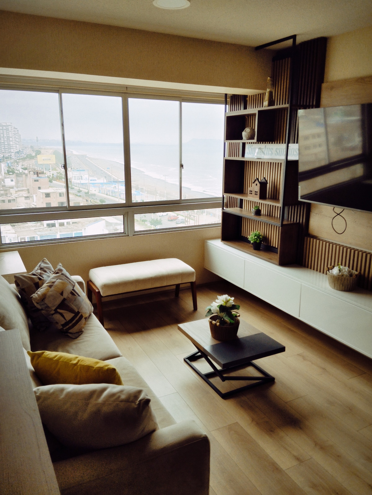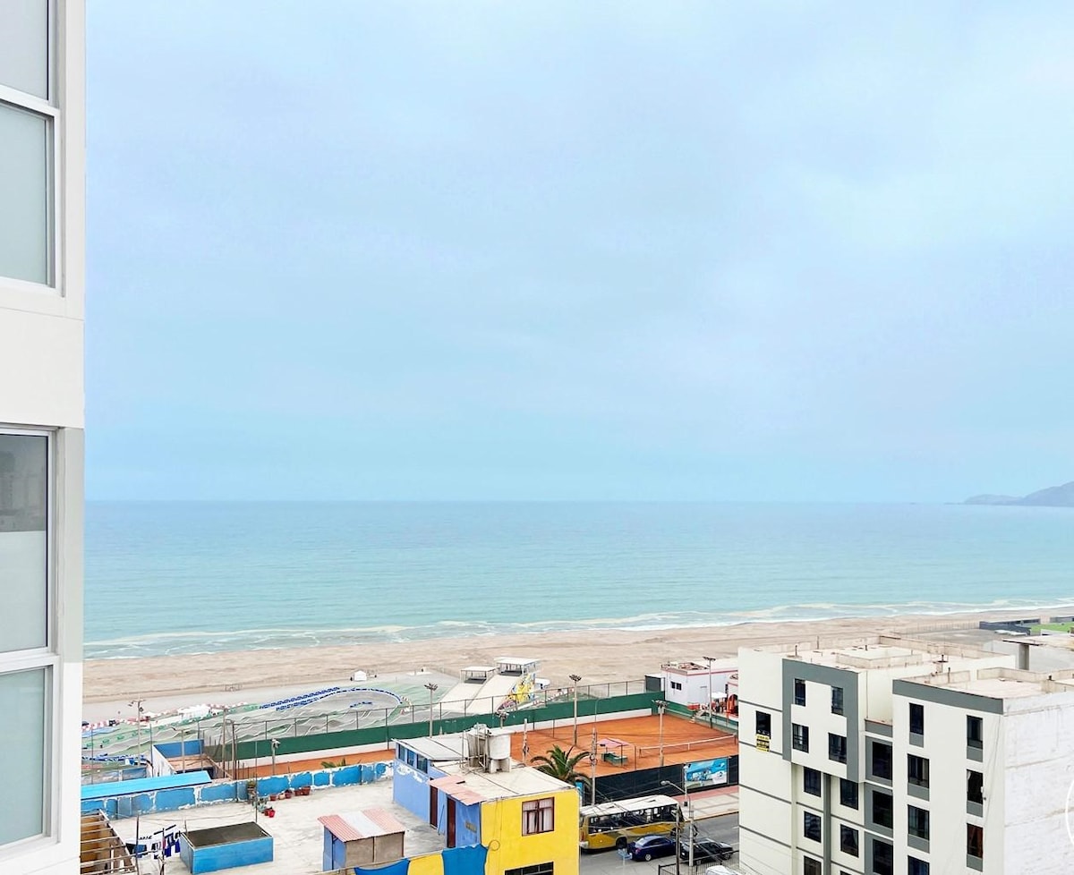 🔝Beautiful apartment equipped with ocean 🌊and San Lorenzo Island 🏝 views. We have a swimming pool, sauna, gym and children's games. We also have 24x7 security! What you'll find: - GIANT 96-inch 🎬TV in the living room - 🏊♀️Free pool - 🚘Private parking - ✈️15 minutes from the airport - ⭐️15 minutes from Miraflores - 🛍5 minutes to Plaza San Miguel Mall - 🏟Opposite Arena 1 San Miguel - 🪂Paragliding on the beach - 🍖Grill Area (Check) - Sauna cost per visit