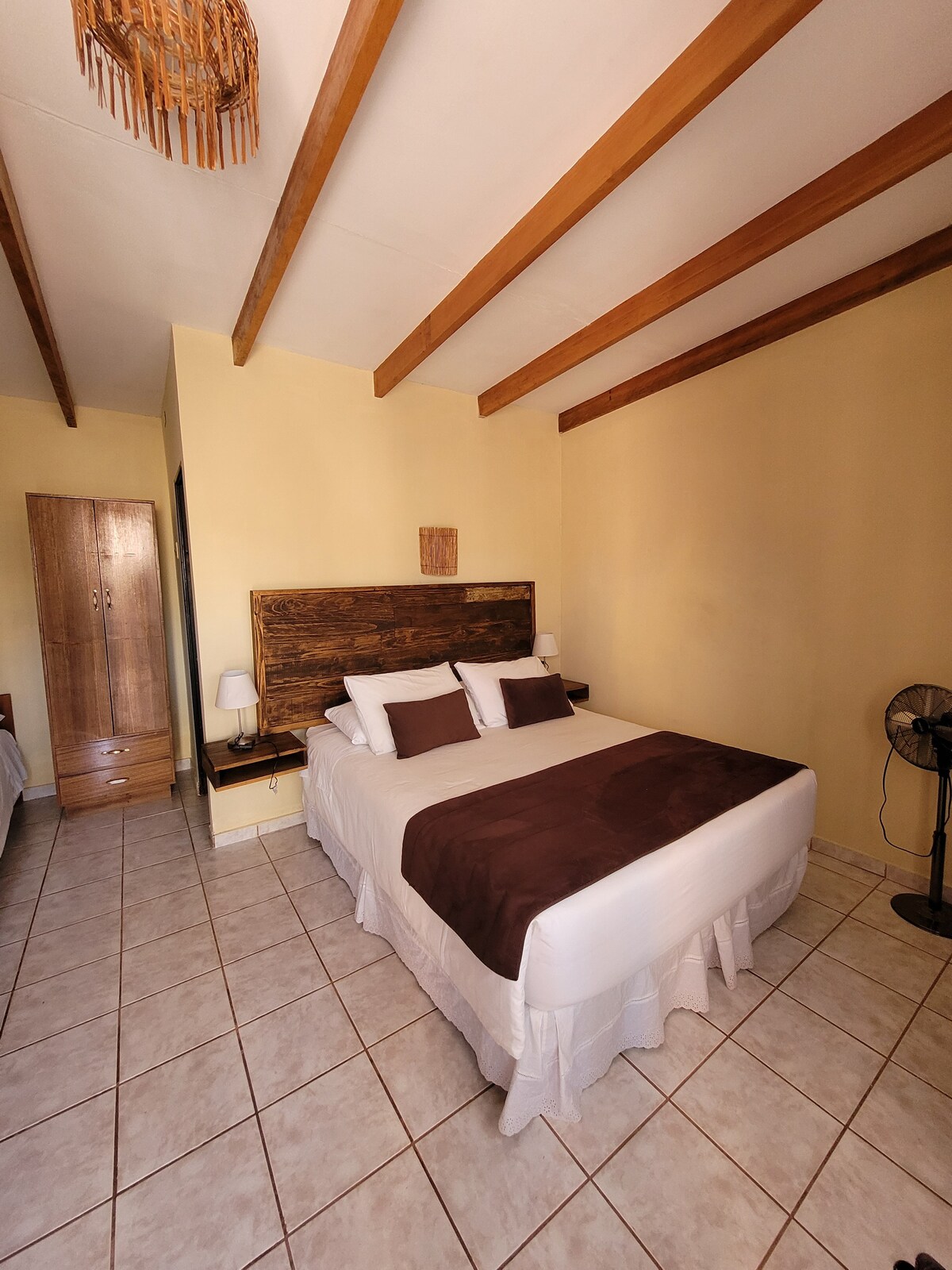 We offer this double room located a few meters from downtown San Pedro. The room includes a private bathroom, bedding, blankets, towels, hairdryer, heating and fan. Breakfast is included in the reservation, with five options from our bar, accompanied by coffee or tea. It also has a shared space where you will find a water, tea, refrigerator, and microwave area. WiFi is free. Remember that the posted price is per room per night!