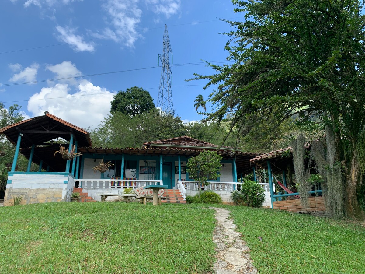 Relax with the whole family in this quiet place to stay Fully furnished country house with 2 bedrooms includes dining room, kitchen, kiosk with fireplace, barbecue area, campfire area, walk through large green areas, parking. It is located in the village of El Tambo in San Pedro de los Milagros, a 5-minute walk from the metro's integrated bus parking lot