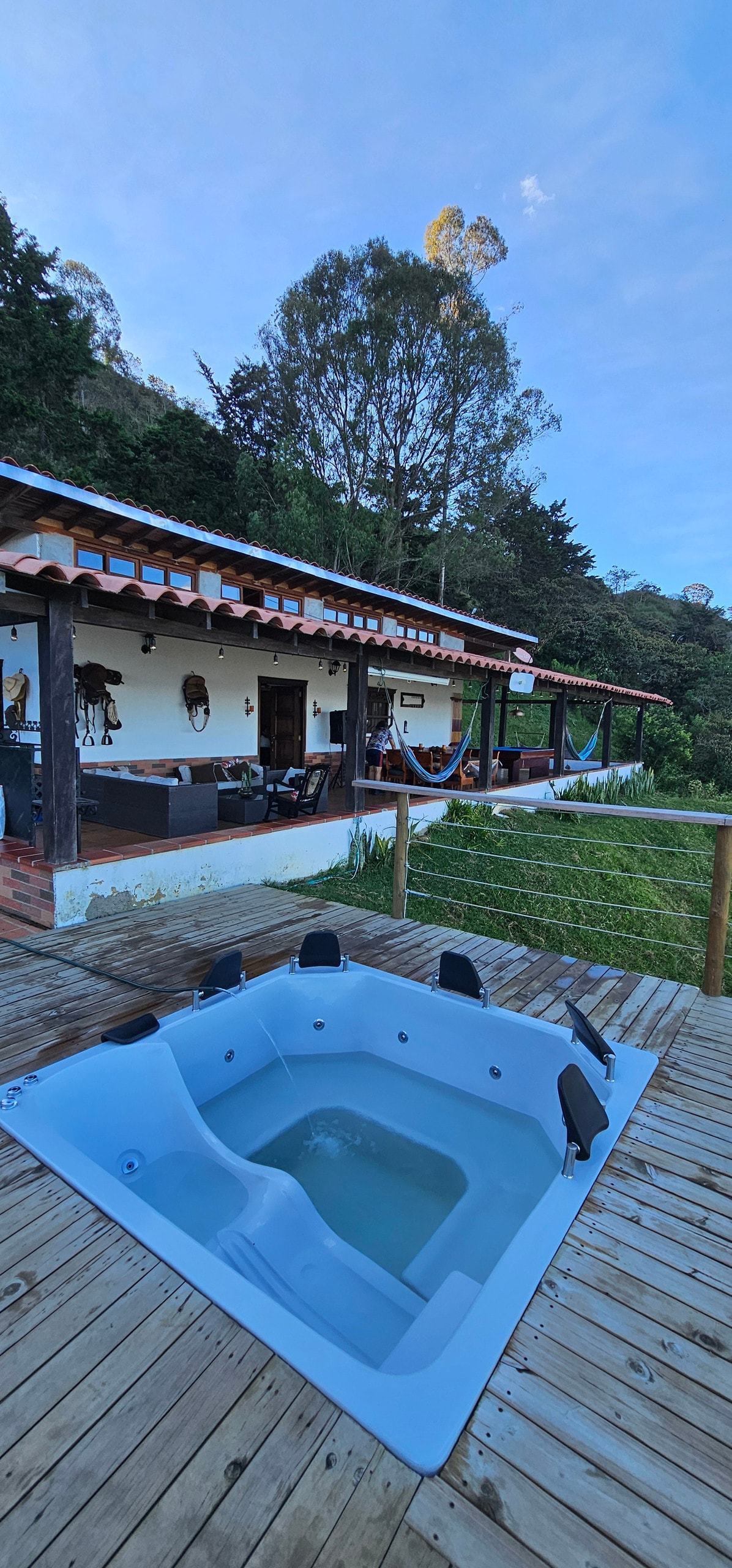 Live unforgettable days in this beautiful estate surrounded by nature, perfect for families, groups or couples looking for rest, privacy and a welcoming atmosphere With 4 bedrooms and 4 bathrooms, you will enjoy spaces designed to relax and share: • 🛁 Jacuzzi and pool with mountain views • Pool 🎱 table and games • 🐴 Farm, Lake and Horse • 📶 Wi-Fi. • 🍽️ Equipped kitchen and BBQ area Ideal for getaways, celebrations or disconnecting in a natural setting that has it all
