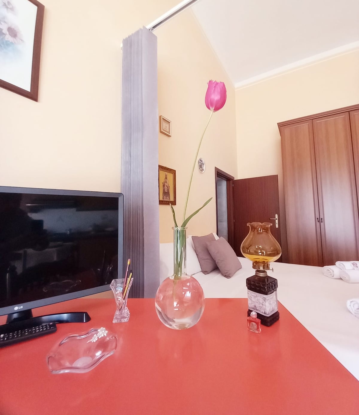 Casa Stella del Mattino is located in Taormina just 700 meters from the historic center, on a hill overlooking the sea, in a quiet-panoramic area where you can admire a breathtaking view. From the Center you can reach the beaches of Isola Bella and Mazzarò in a few minutes. The house has a large equipped kitchen, two bedrooms, a sofa bed, two bathrooms, air conditioning, and free Wi-Fi. A terrace where you can have lunch is at your disposal. Private parking.
