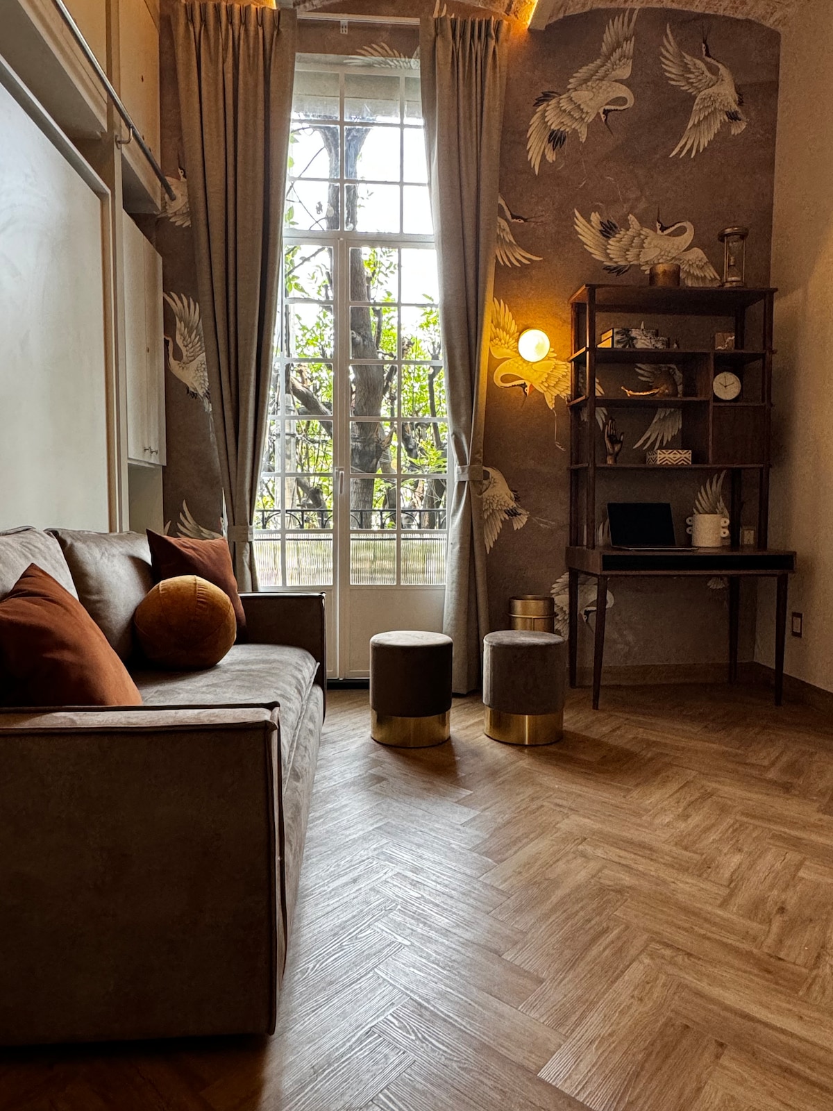 cozy suite of 60 m2 located in a unique set of houses built in 1905 in havre, one of the most exclusive streets and with the best gastronomic offer of the Juarez colony. the house was completely restored adding contemporary elements to its typically Porfirian architecture. the space has been furnished with original pieces in the modern mid-century style and other finds of our searches by the antique dealers of the city.