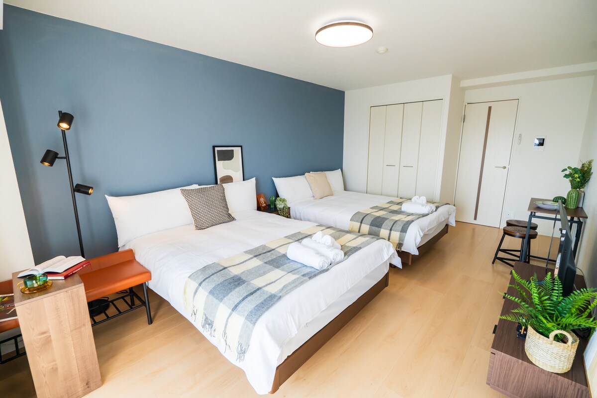 3F Western Suite- 「STARS」 「Tennoji part1」A perfect convenient club-type senior apartment with Breeze, Space, Sun&Moon, Harmony rooms. Total area is 481㎡ which has a chic Japanese garden. In 2018, we have fully decorated every room with sound-proof doors, sound-proof glass, and bathroom. ※※Whole apartment can be rented with 8 people above. Walking in the street behind the apartment, you can experience the quiet daily life of Japanese people.