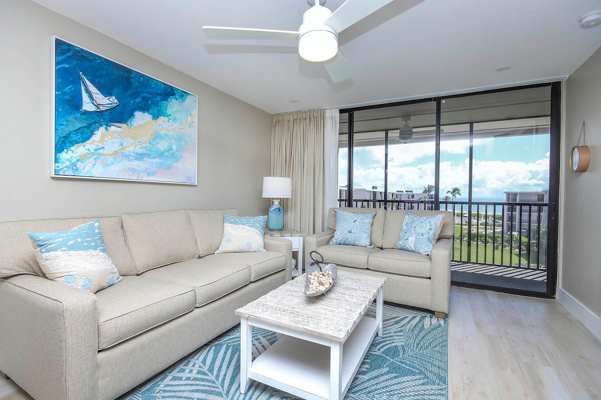 Private lanai with stunning ocean views — perfect for morning coffee or unwinding in the evening as the sky softens at sunset. Located on the 3rd floor with elevator access, combining great views with easy convenience. Spacious king bedroom with a premium mattress and plush linens for restful nights. Fully equipped kitchen and dining area for evenings in, or take advantage of Sundial’s on-site restaurants just steps away. Resort amenities include restaurants, pool, and a convenience store.