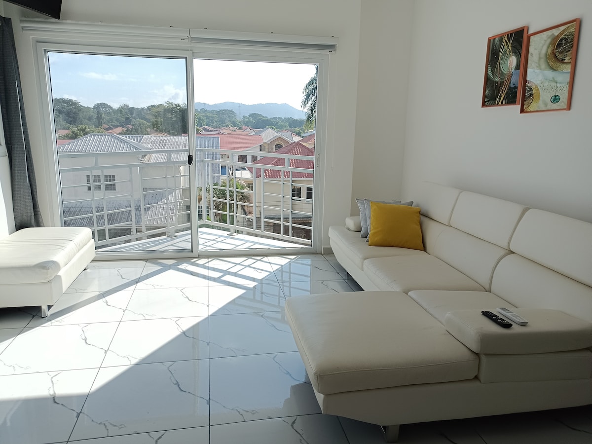 Elegant centrally located condo, 24 hours security. Condo is modern with gorgeous panoramic views. Has WiFi, Netflix, hot water, gym, pool, jacuzzi, lounge, playground. Is one of the best areas in SPS. Near restaurants, shopping and night life.