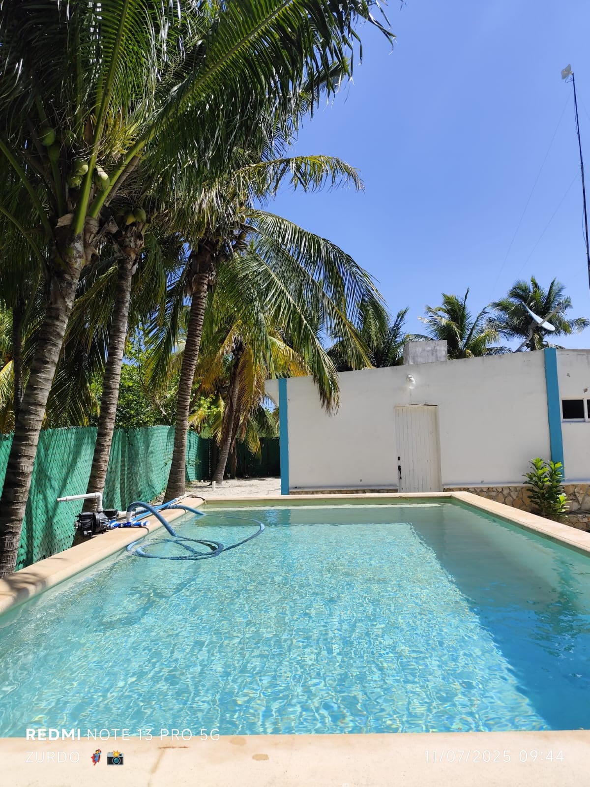 Casa de playa con amplio terreno y hermosas palmeras . Cuenta con acceso directo a la playa, aproximadamente a 100 metros, donde podrás disfrutar de la sombra de una palapa privada a la orilla del mar. Encontrarás facilidades y comodidades para disfrutar de unos días placenteros: cocina equipada, recamaras con aire acondicionado, piscina, terraza, área de asador, juegos de mesa, etc.
