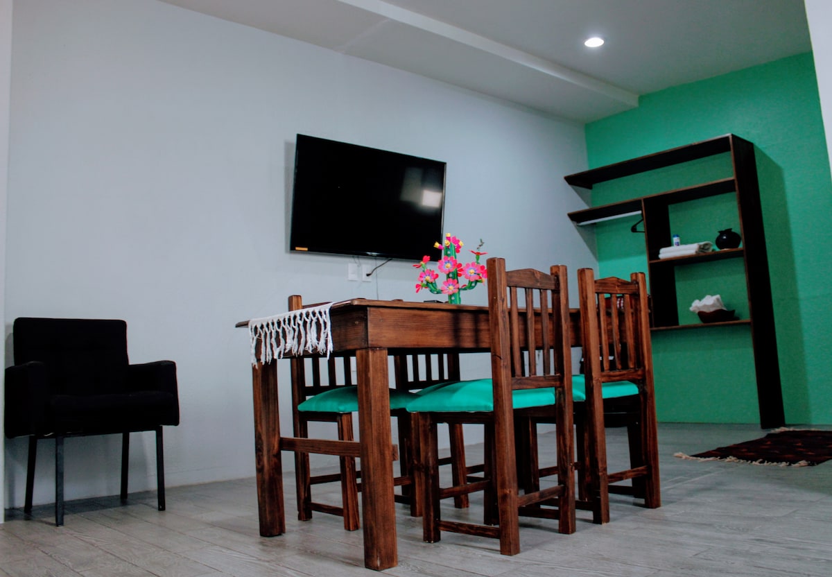 An apartment located on a second floor. 2 blocks from the pedestrian street and 1 from the famous "Cruz de Piedra", where the "calendas" (traditional Mexican kitchens) are. There is a market with local products, cafes, a laundry, a bakery, restaurants, museums, and churches nearby. You can walk around the city. On the way to the center there are many tourist attractions. A safe area with a lot of tourist and cultural affluence. Very close to the Guelaguetza Auditorium, within walking distance.