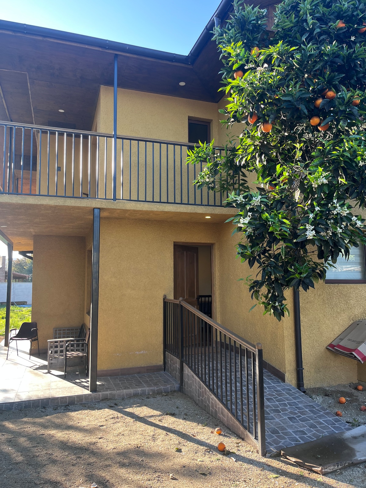 In a house in the middle of a field of mandarins and avocados. It has panoramic views of the valley, which offer incredible sunsets. It has an en-suite room with views and the rest of the beds are in a cabin on site, in the common area. It is a house designed to be together and enjoy with family or friends.