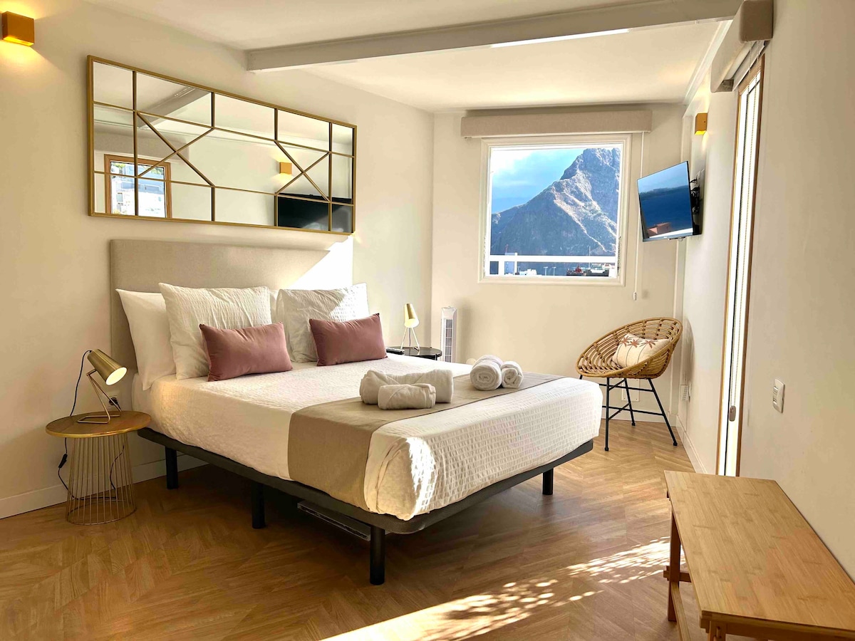 Ático Mirador Decor offers a duplex in the city center with panoramic views of the beach, mountains, and historic center from its two chill-out terraces. It features a minimalist and elegant style and is located in the historic center, a few meters walk from the beach, cafes and restaurants. The penthouse has a double bedroom and a sofa bed, kitchen, a toilet en suite and a full bathroom with a beautiful shower with a glass ceiling from where you will enjoy views of the sky.