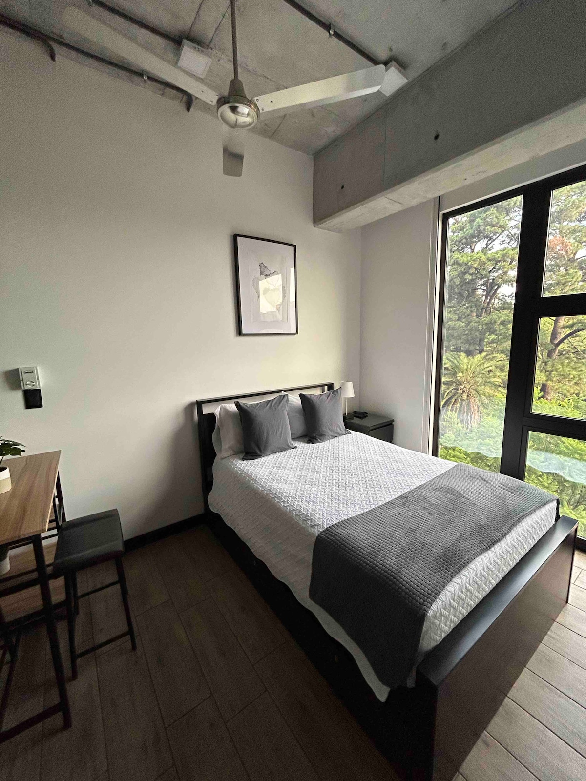 Enjoy this charming small studio apartment with portable window air conditioning and stunning views of the Agua volcano from the balcony. Strategically located in the heart of Guatemala's shopping and business district, just 15 minutes from the airport. This apartment offers you a unique experience, surrounded by a wide variety of restaurants, bars, and shopping malls to make the most of your stay.