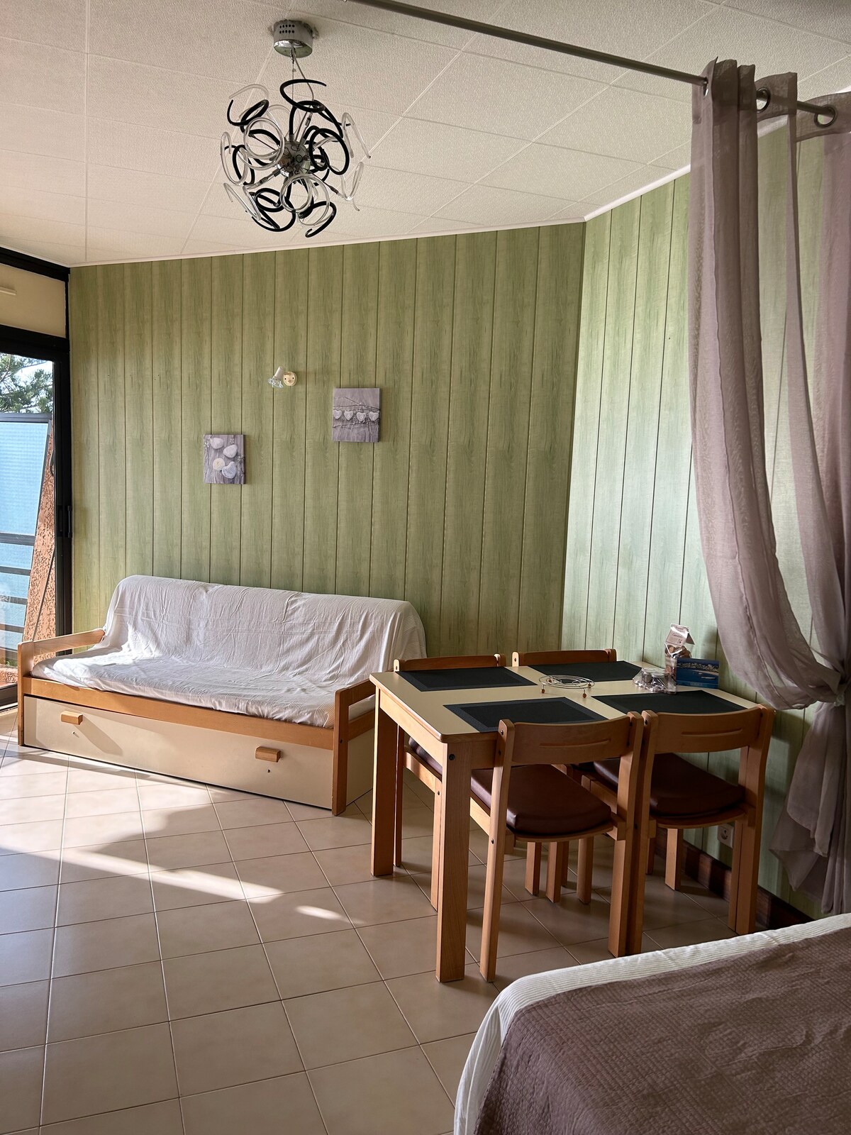 Air-conditioned studio located on the 4th floor with elevator, in a waterfront residence. Amazing sea views from the covered terrace. Fully equipped studio guaranteeing a comfortable and pleasant stay: equipped kitchen with small appliances, washing machine, bathroom with shower, 4 beds, TV. Direct beach and coastal trail access. Residence equipped with a swimming pool and outdoor shower, a wooded park, ping-pong table and petanque ground reserved for the Residence.