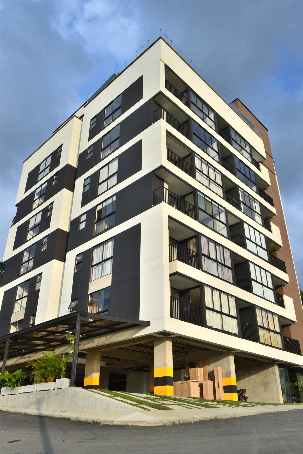 Relax and enjoy a comfortable and modern space. Watch your favorite movies or series on a 4K TV without leaving the bed. Share a glass of wine on the balcony while admiring a beautiful view of Pereira. You’ll be just steps from Circunvalar, surrounded by restaurants, cafés, and bars. Explore the Coffee Region with our guidance. The building offers a pool, washer, dryer, and an ideal location close to Megacentro Pinares.