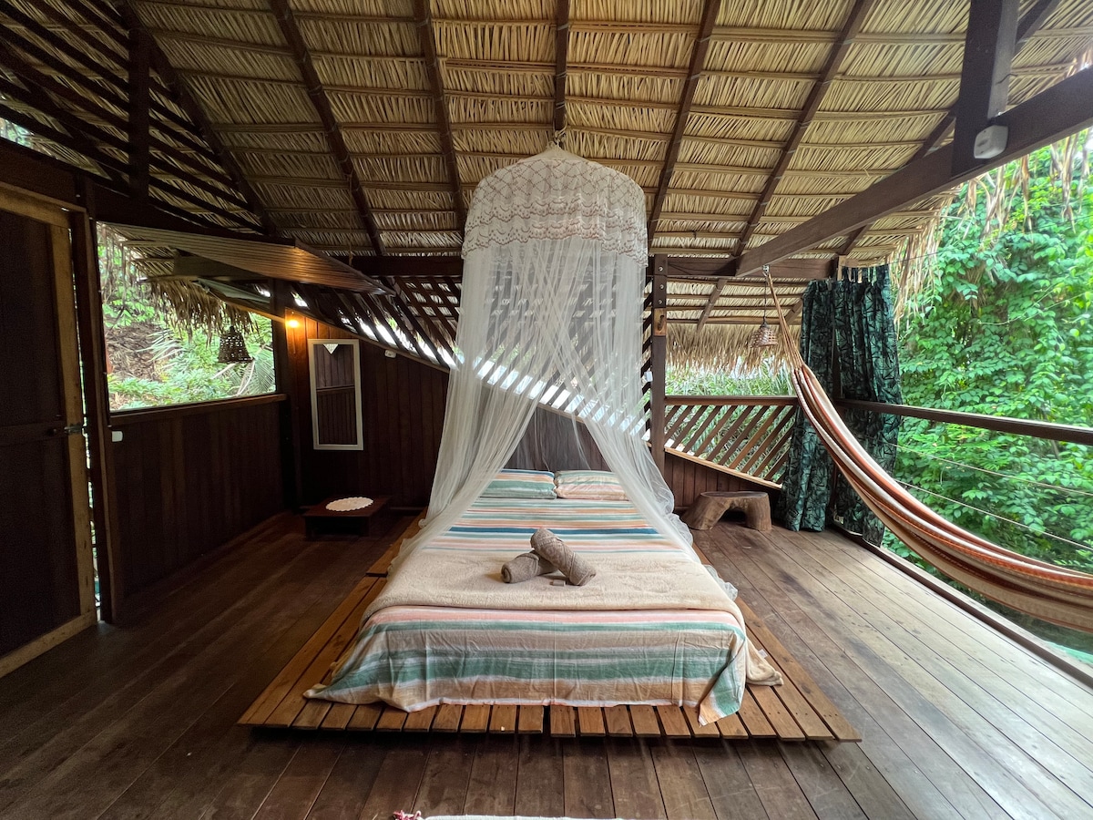 Our dream home in the Amazon rainforest, "The Tree House." All noble wood open to the forest, two floors, rustic personality but with all the charm, two kitchens, two bathrooms, open and light-filled rooms. The 3rd-floor lookout point is a dream come true to stay in the hammock looking at the forest! Balcony surrounds the entire house, direct contact with nature. Floating hammock to relax with lush views! Dream We have high-speed Wi-Fi