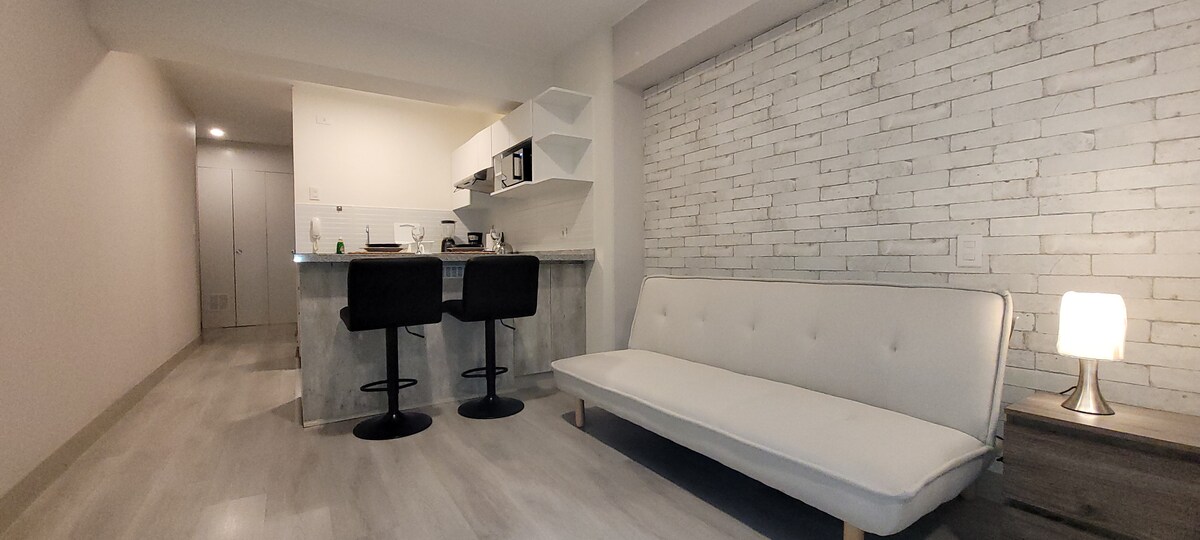 Enjoy a relaxing stay in this modern 50 m² loft, located in a residential area, a few minutes from San Isidro, La Rambla Mall, supermarket and various restaurants. The loft has a kitchenette with a bar, a cozy living room, a bedroom with a queen size bed and a full bathroom. Located on the 35th floor, it offers a privileged view, plus 24-hour security. Includes hot water, WiFi, Smart TV, kitchen and laundry equipped for added convenience.