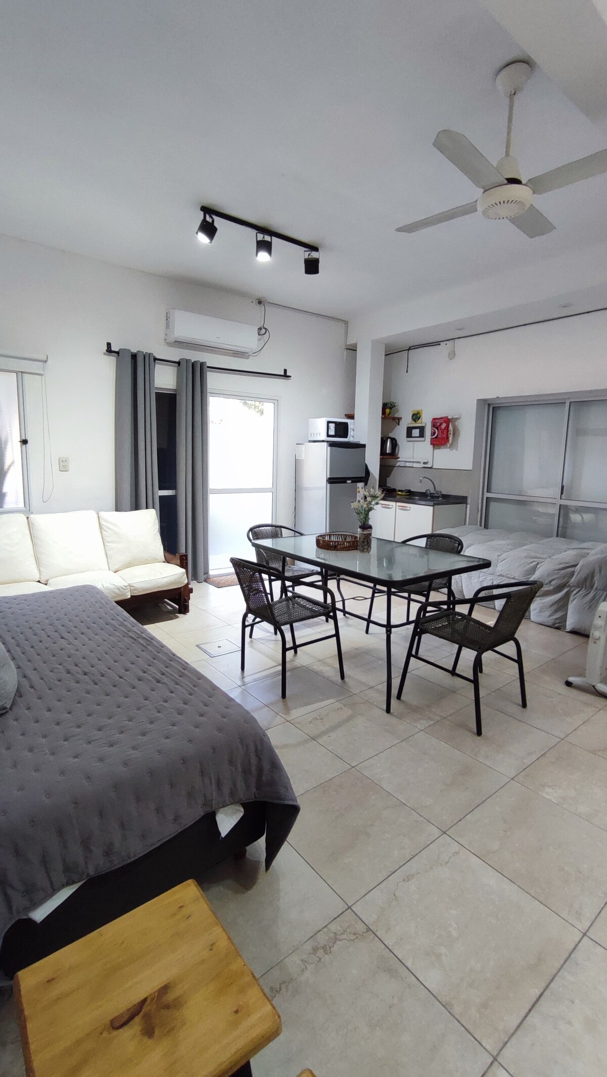 We invite you to enjoy a beautiful stay in this modern studio apartment. Great for couples or solo travelers. Located in the heart of downtown, it offers proximity to major tourist attractions and entertainment areas. Just an 8-minute drive to the Estadio Único, a 1-minute walk to Parque Aguirre, a 2-minute walk to the bars on Avenida Roca, and 5 blocks from the main square. Ideal for those who want to explore the city on foot and enjoy the local cuisine, bars, and culture.