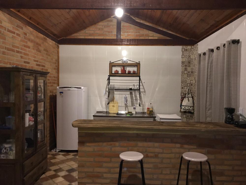 Our chalet in Ibitipoca is very cozy and comfortable, has 2 bedrooms with 6 beds, accommodates 8 people, has 2 bathrooms, 2 balconies, a dining room, a living room, a games room, a kitchen with a wood stove and barbecue, and a deck with a wonderful view of the sunset! It also has a very good fireplace to warm up from the cold! It is located in the arraial, on a plot of 1,000 square meters, and has a beautiful garden in the front, with several native trees and a variety of flowers, where there is a very nice shower!