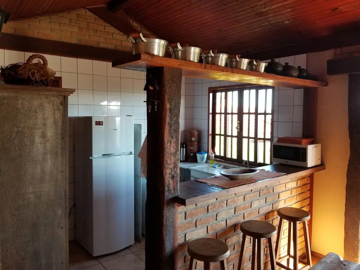 🌄 House in one of the best spots in Ibitipoca, with a privileged view of the mountains and a beautiful sunset! Bedroom 1: 1 double bed and 1 single bed Bedroom 2: 1 full bed and 1 single bed Living Room: Sofa bed 1 bath Fireplace Wi-Fi TV Equipped kitchen (stove, oven, microwave, fondue pot, refrigerator and utensils) Deck Barbeque It is located within the village of Conceição do Ibitipoca, close to the bars, restaurants and shops that the village offers 3 km from the entrance to the State Park