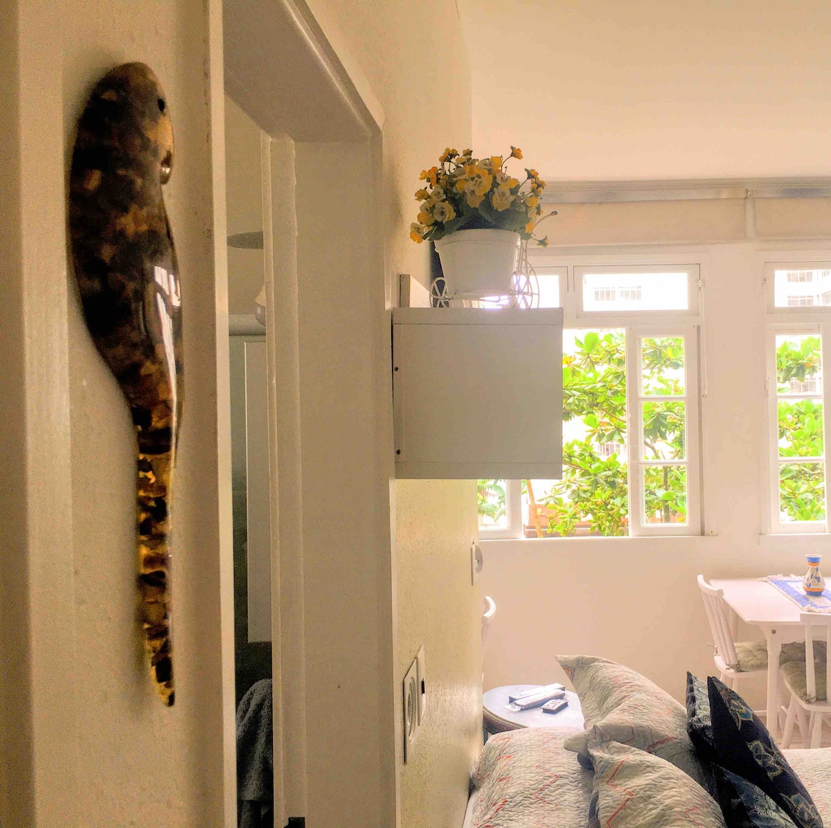 🏖️ Pé na Areia Flat – the sea is your backyard! Wake up to the sound of the waves, feel the breeze and the sun coming through the window. 🌞 Alexa takes care of the environment — you just relax! Fully equipped kitchen: air fryer, Dolce Gusto coffee maker, grill and stove. Super comfortable bed, Smart TV, fast Wi-Fi, air conditioning and garage. We accept PETS🐾. Perfect for couples, who love to enjoy the real sea. Just a few steps from the sand and close to everything: restaurants, pharmacies, ice cream parlors and markets! 🌊😎