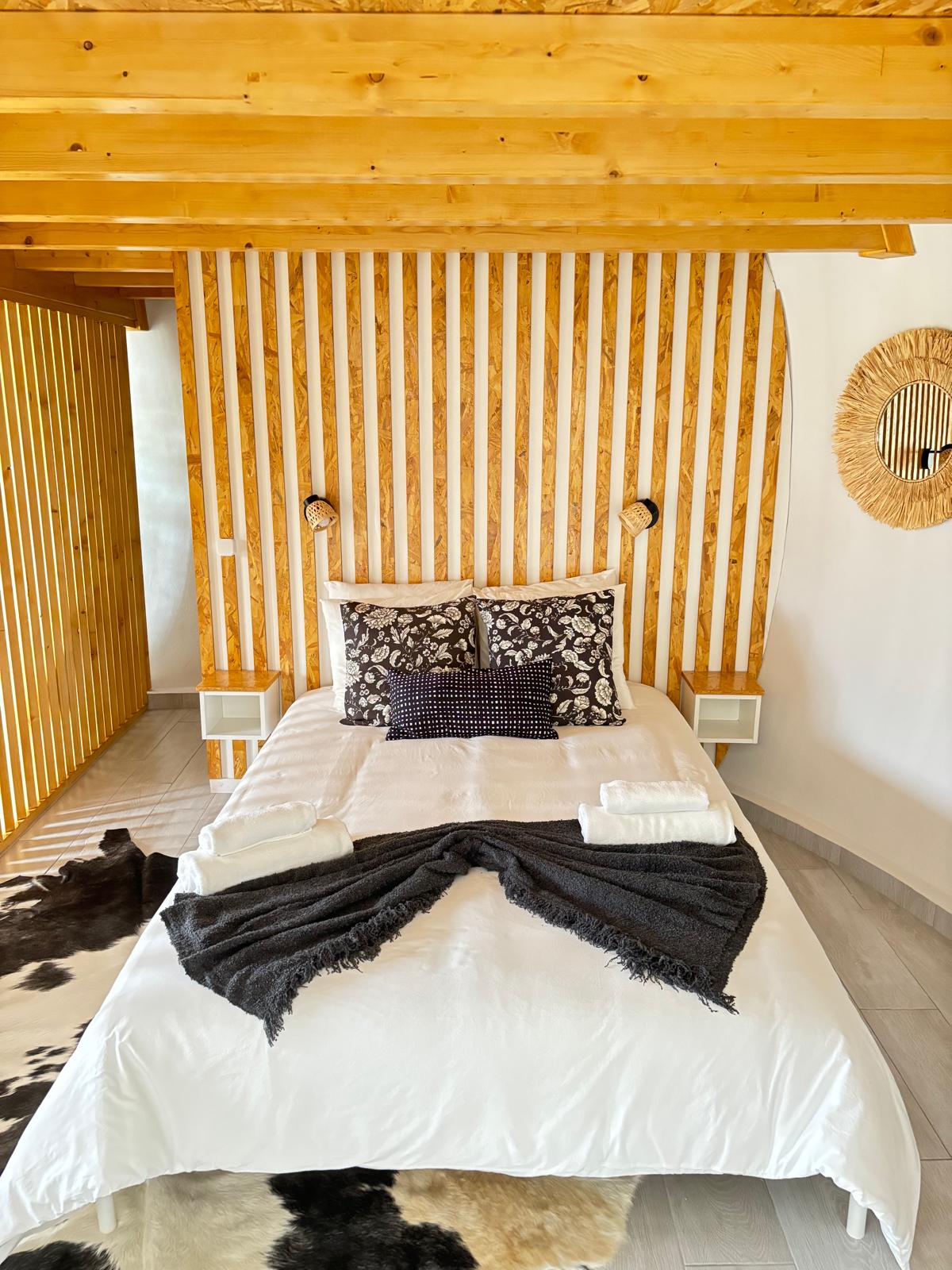 STUDIO T0 (22m2) with equipped private kitchenette, wc and possibility of accommodating one couple (double bed) Possibility of breakfast upon on request Casais Brancos Village Wifi 250mb A/C Private parking Small balcony SharedHeated pool Shared garden Shared exterior kitchen Possibility of having children's bed upon on request Possibility of having breakfast included, upon on request Casais Brancos village This studio belongs to Casa da Aldeia property in the backyard.