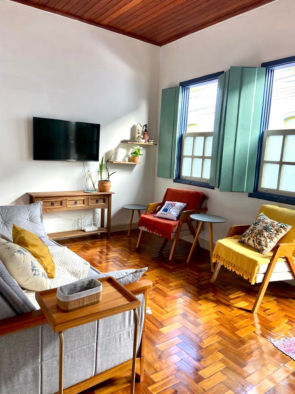 Located 100 meters from downtown Lavras Novas (and 30 minutes from a waterfall), Casa de Madeira combines privacy with proximity to the main street. The house is cozy and complete. Living room with all the comforts, fireplace, large bedrooms, well-equipped kitchen and Wi-Fi with the highest possible speed in the region (35 Mbps). It has a large garden area. If you are interested in art, you can also purchase original and authentic art.