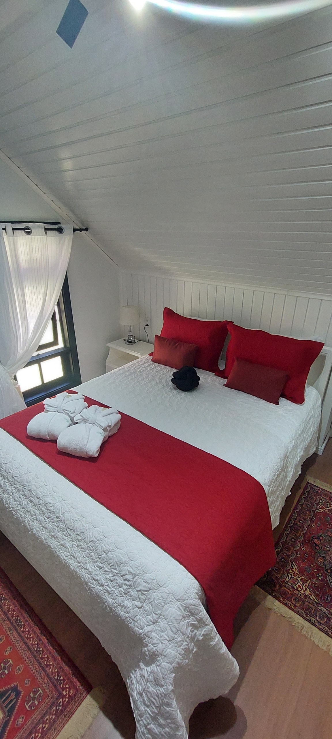 The Luxury Apartment provides comfort, privacy and an unforgettable experience. The dormitory has a queen size bed, spring mattress, 43" TV with streaming, split air conditioning, minibar and private bathroom, providing total comfort. The ground floor has a balcony, sofa bed, table, microwave, electric kettle, tea holder, china cabinet with dishes, as well as a wood-burning stove, creating a romantic atmosphere. The daily rates include a delicious breakfast, served in a picnic basket.