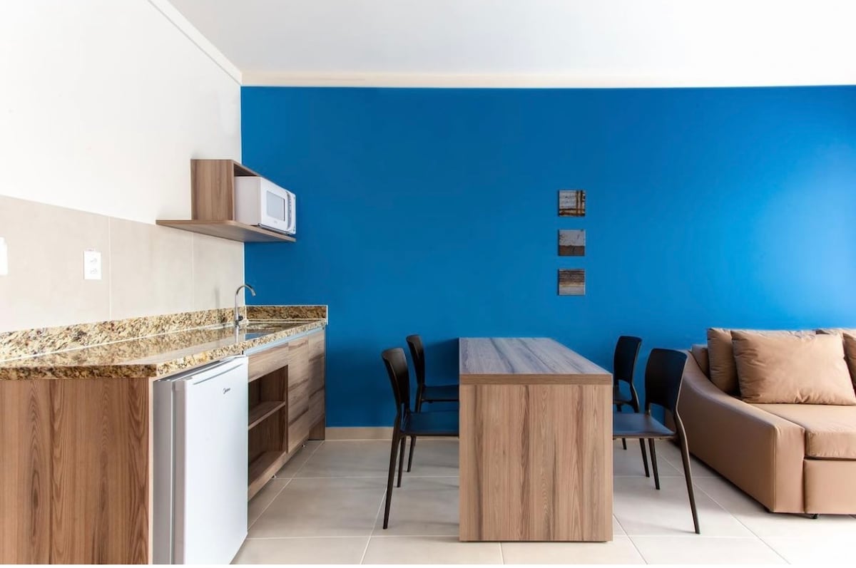 Enjoy the natural beauty of Pedra Azul - ES by staying at the Vista Azul Residential Flat. The flat accommodates up to 6 people with great comfort and features such as Wi-Fi internet, bedroom-living room with Smart LED TV (40"), Queen bed, two auxiliary beds (single) and sofa bed, as well as a beautiful kitchen with refrigerator and modern utensils. Maximum adult limit: 4 (four).