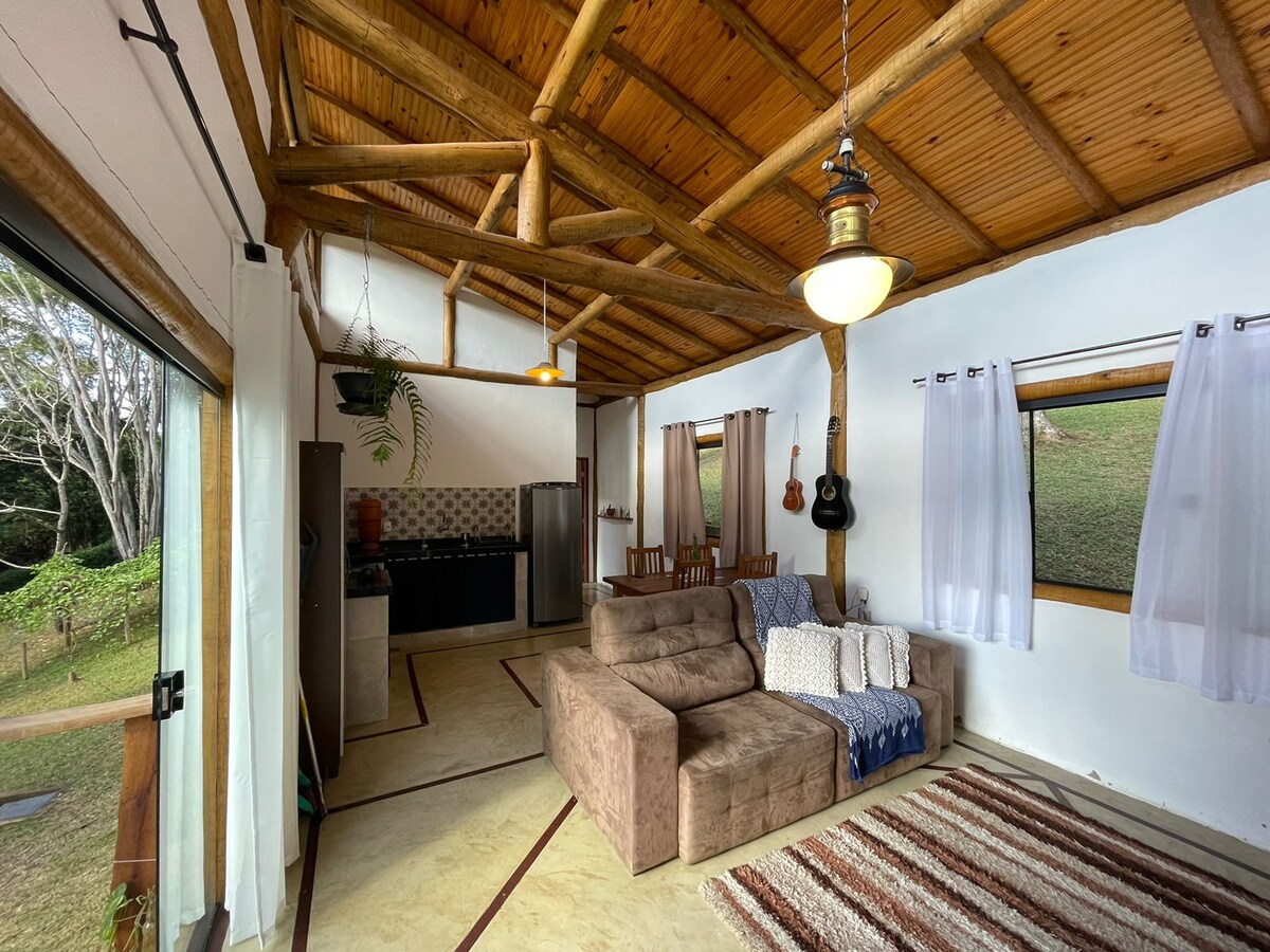 Kick back and relax in this calm, stylish space. Our choupana is a guest house with a wooden structure, quite pleasant and cozy. Located within an environmental preservation area, in a gated community, with 24-hour concierge, fishing lakes and lots of nature! We are approximately 20 km from Juiz de Fora. For those seeking tranquility in the midst of nature. Starting in 2024, the pool and leisure area will be shared with the new chalet and any guests of the main house!