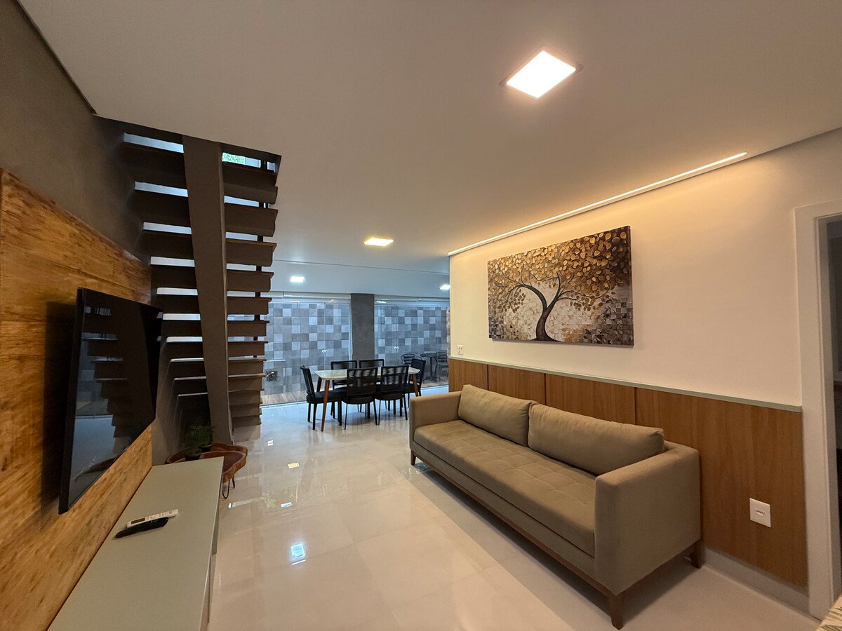 We love this apartment and take care of it with ❤ Perfect for families looking for a good time on Riviera beach. The guest has access to all leisure items in the condominium, fitness, daily cleaning in the apartment, swimming pools, sauna, gym, complete infrastructure and differentiated services, guaranteed fun for everyone! The duplex apartment has a kitchen, 2 bedrooms (one smaller), 2 balconies, TV, Wi-Fi, and daily maid service. It is 98 m2.
