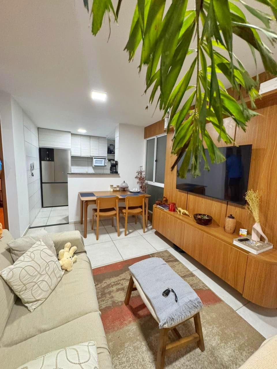 Cozy and functional apartment in a gated community, on the second floor. The property has 2 bedrooms, one en-suite and another social bathroom, totaling 2 bathrooms. One of the bedrooms has a double bed and the other a queen bed, with air-conditioning in both. We comfortably accommodate up to 4 people. The apartment is in an excellent location, close to hospitals, supermarkets, shopping malls and beaches. We also offer a parking space in the garage.