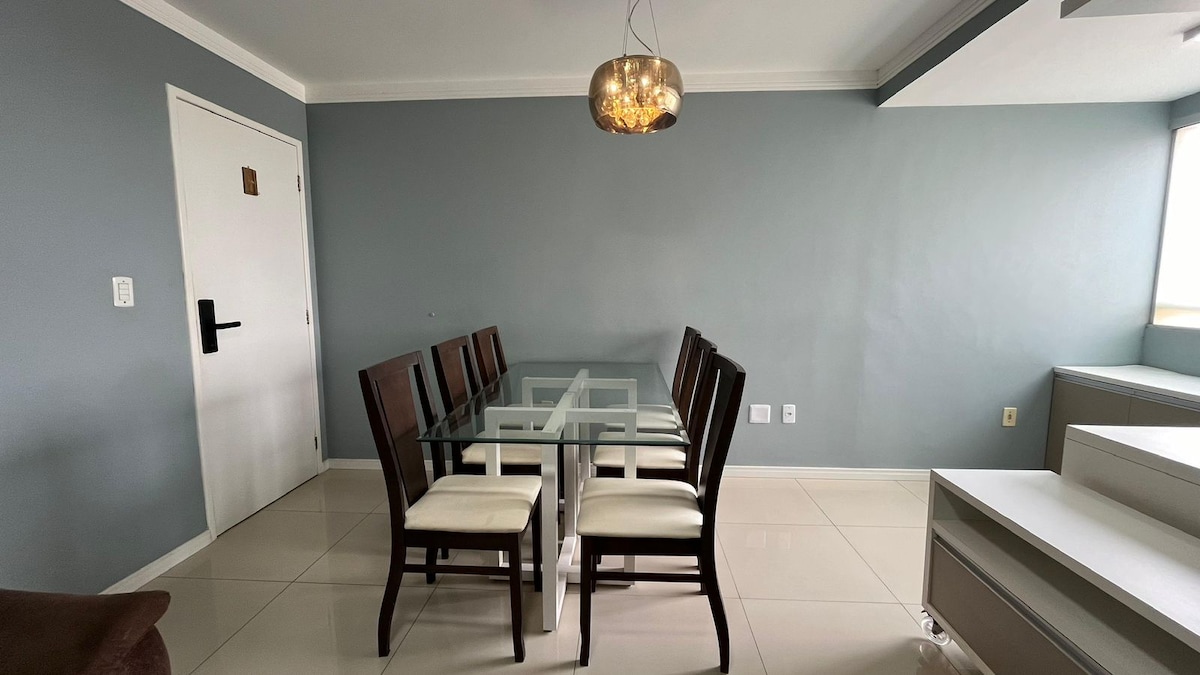 6x no interest Get to Litorânea beach on foot in just 7 min! By car it's 2 min! Air-conditioning in 2 bedrooms; 300mb Wi-Fi; Washing machine; Iron; Smart-TV; 3 large bedrooms; Full kitchen; Bed linens and bath towels; Next door is a SmartFit gym, Drogasil pharmacy, Square with snack bars; Nearby: supermarkets, restaurants, bars, Golden Shopping Mall, public transportation; Great location in the Calhau neighborhood. Get to the Historic Center in just 10 minutes by car!