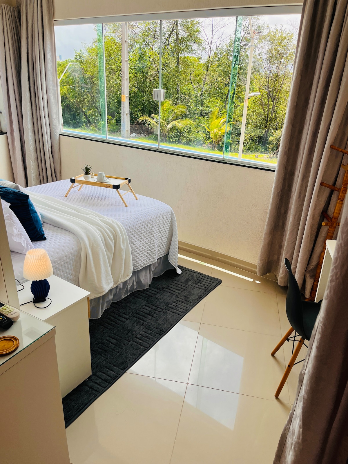 We design everything to ensure a unique experience of comfort and convenience! We guarantee a large and comfortable space, equipped with a complete kitchen, including all utensils and appliances. We also have bed, table and bath linens. In addition to indoor comfort, our flat also offers access to the leisure area with a swimming pool, fitness center, rotating parking and laundry. Housekeeping service from Monday to Saturday. We look forward to welcoming you soon for a memorable stay!