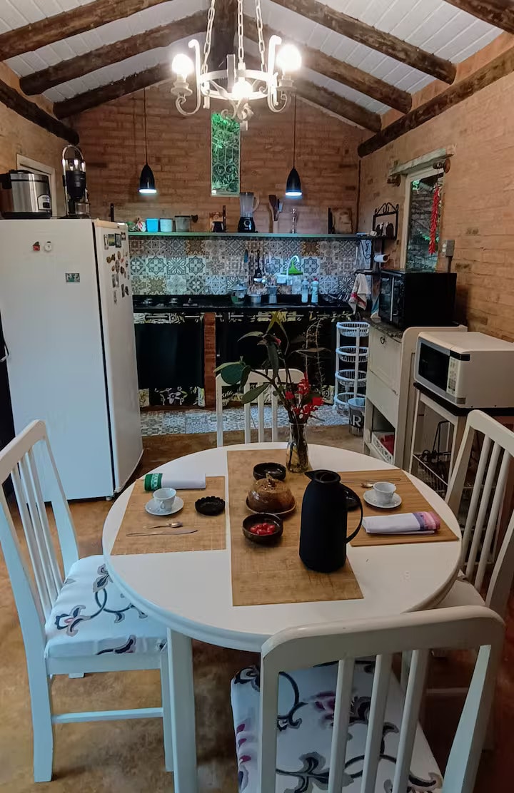 House located in the central part of the Demétria Rural Neighborhood, with great product options and organic food, as well as nice walks through the community. The house is close to three nice restaurants, which can be accessed on foot while contemplating the sky, and also very close to a coffee shop that, in addition to a bakery, has a store. Next to the house, there is also a woodworking school (atelier) that operates a few days a week. Come and relax in this peaceful accommodation surrounded by nature